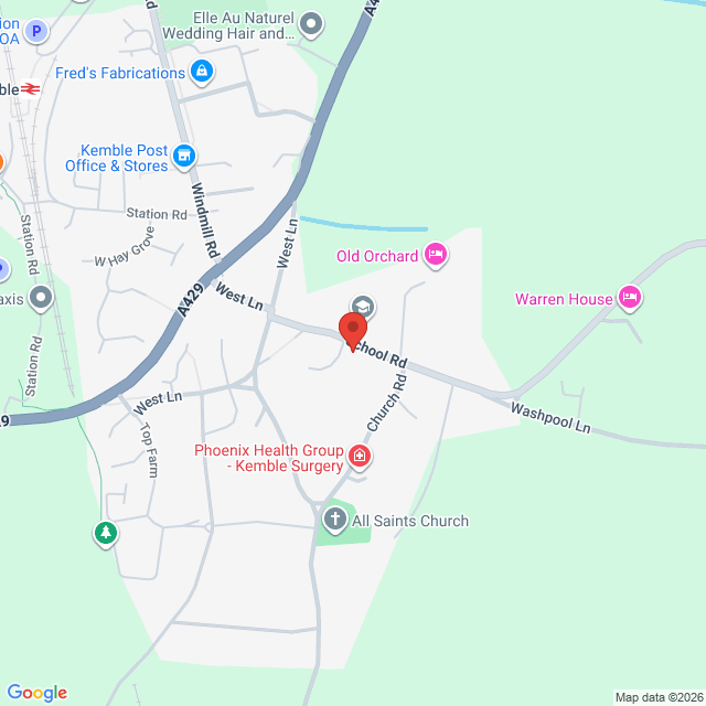 Opposite Kemble Primary School, parking is behind the village hall and access to the building is step-free. There is space for buggies and car seats inside and there are toilets and baby changing facilities.
